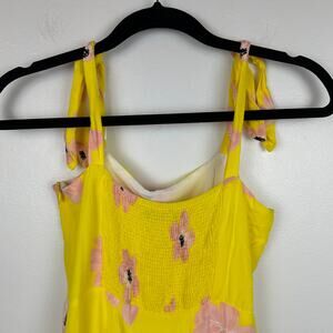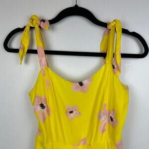 Zara Womens Skater Babydoll Sleeveless Yellow/Pink Floral Mini Dress Medium