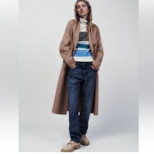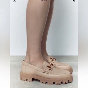 Zara Tan Khaki Gold Buckle Chunky Lug Sole Slip On Loafer Shoes