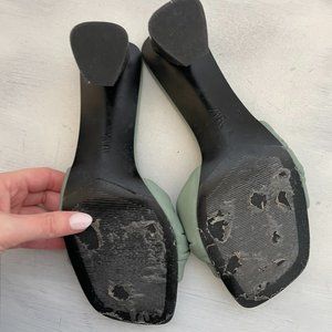 Zara Women's Slip On Sandals Knotted Leather Square Toe Heels in Green Sz 39