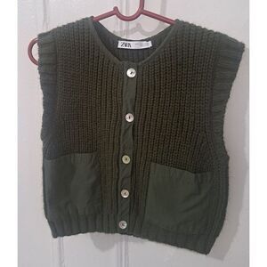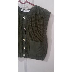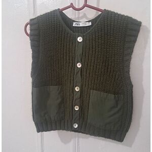 Zara Womens Small Cropped Ribbed Olive Green Utility Vest Top Boxy Spring Summer