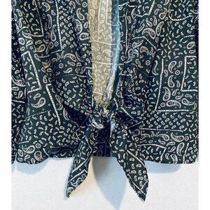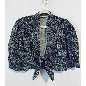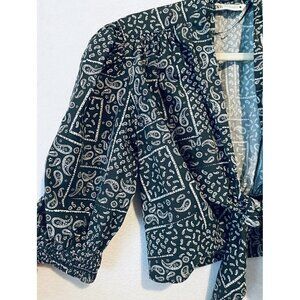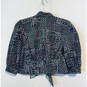 Zara Womens Small Gray Paisley Bandana Print Tie Front Cropped Puff Sleeve Boho