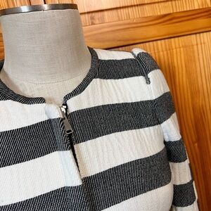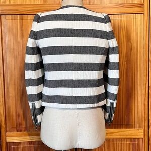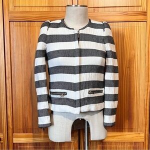 Zara Women’s Small Gray White Stripe Cotton Blazer Puff Sleeves Padded Lined