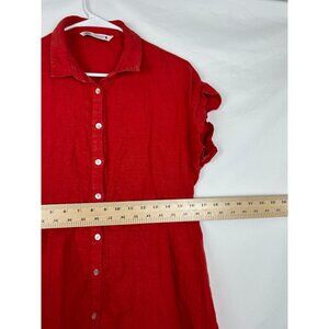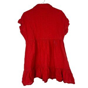 Zara Womens Small Red Tiered Button-Down Dress With Ruffle Sleeves 100% Linen
