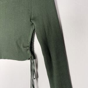 Zara Womens Small S Green Cropped Ribbed Sweater Side Tie Keyhole Opening Fitted
