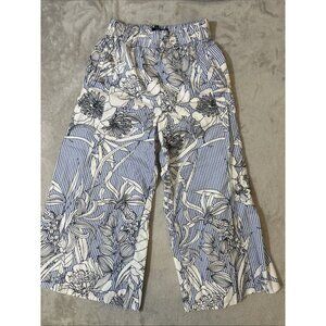 Zara Women’s Small Wide Leg Pants Blue White Stripe Floral Print Cropped. Condition is Pre-owned - Excellent. Shipped with USPS First Class.