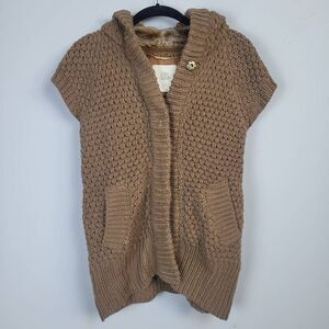 Zara Womens Snap Front Chunky Knit Cardigan Sweater Sz Medium Brown Fur Hooded