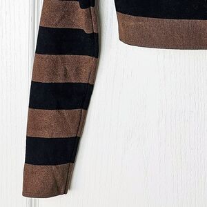 Zara Women's Soft Ribbed Knit Cropped Sweater, Brown & Black, SMALL