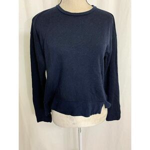 Zara Womens Solid Navy Blue Long Sleeve Sweater Top Crew Neck Small