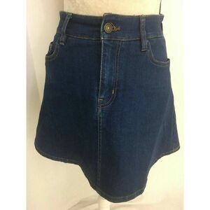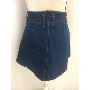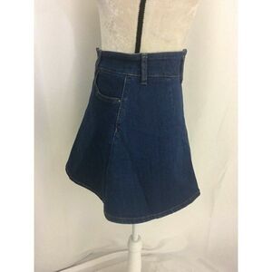 Zara Womens Solid Blue Jean Fit Flare Mini Skirt High Waist Xs
