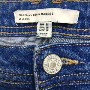 Zara Women's Straight Leg Ankle Jeans Distressed Fringe Hems size 6