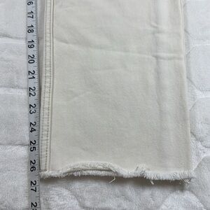 Zara Womens Straight Leg Jeans Ivory Cream High Waisted Raw Hem Button Fly Sz 4