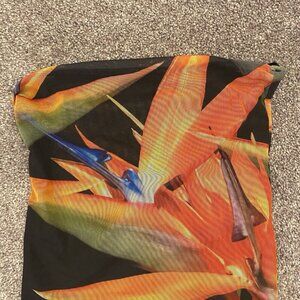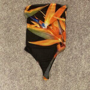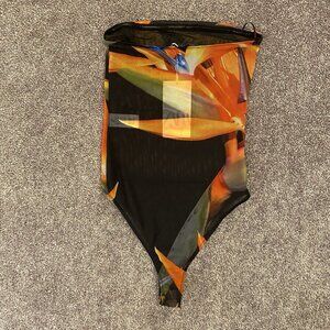 Zara Women’s Strapless Mesh Printed Thong Bodysuit Tube Top Flowers