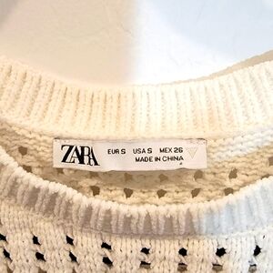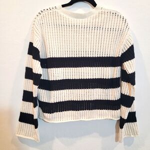 Zara Women's Stripe Crop Knit Sweater Black White Size Small Oversize