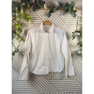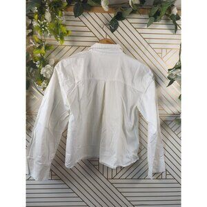 Zara Womens Striped Button Down Cropped Shirt White Blue Cotton Size Medium