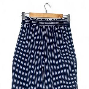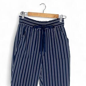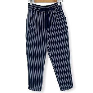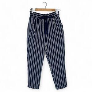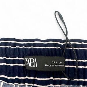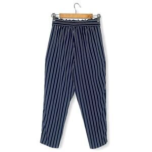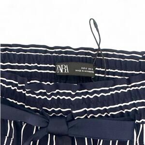 Zara Women's Striped Drawstring Pants Size S Navy White Elastic Waist Trouser