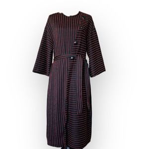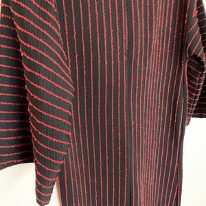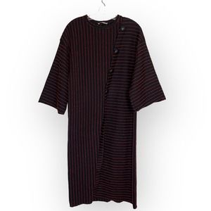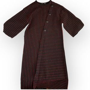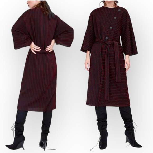 Zara Women’s Striped Jacquard Button Detail Midi Dress Red Black Size S