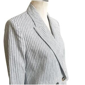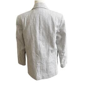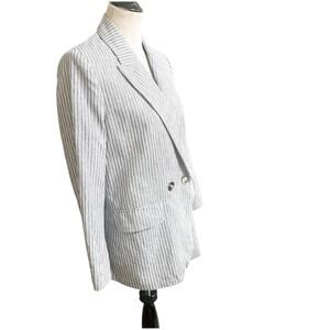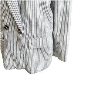 Zara Women’s Striped Linen Blend Boyfriend Blazer Size Medium Two Button Blue