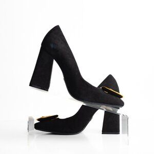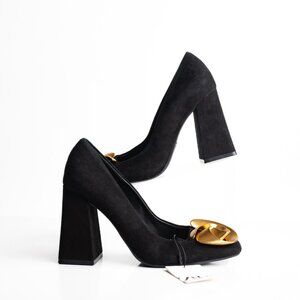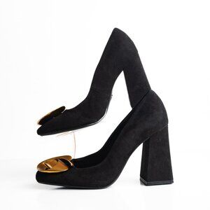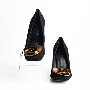 Zara Womens Suede Pumps Heels EU 37 US 6.5 Black Gold Flower Detail NWOT