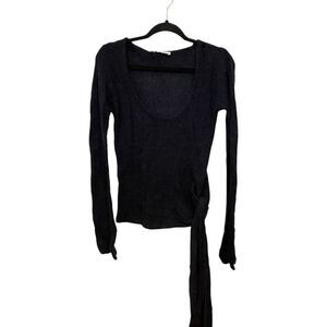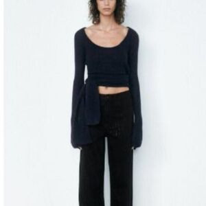 Zara Womens Sweater Wool Alpaca Sccop neck Side tie Knot M Black 5755/122 NWd