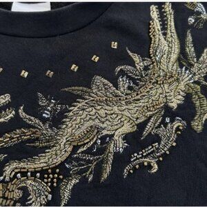 Zara Women's Sweatshirt Black Embroidered Beaded Gold Dragon Size Medium