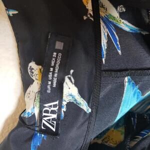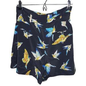 Zara Women's Sz M Navy Humming Bird Printed Satin Chino Short(1732)