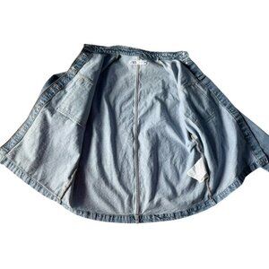Zara Patch Pocket Denim Jacket. Jacket is done in a light wash denim. It buttons up the front and has two large front patch pockets. Jacket is made of 100% cotton and is a woman's oversize medium. Org. list price $120.