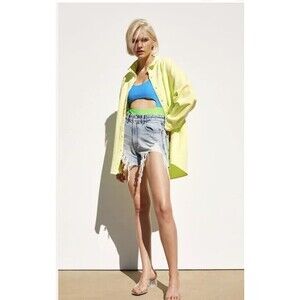 Zara Women’s Sz M Up Shirt Jacket Neon Long Sleeve