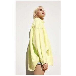 Zara Fluorescent Oversized Snap Up Shirt Shacket Neon Long Sleeve Womens Sz M. No flaws thick material