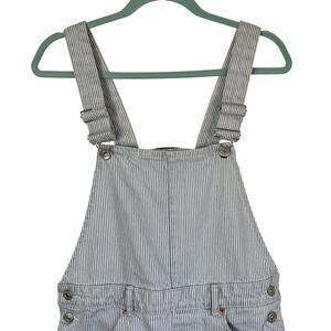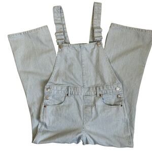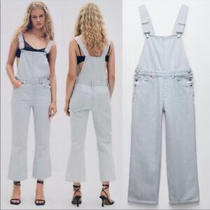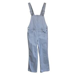 Zara Womens Sz S Pinstriped Denim Overalls Light Blue Bib Style Flared Cotton
