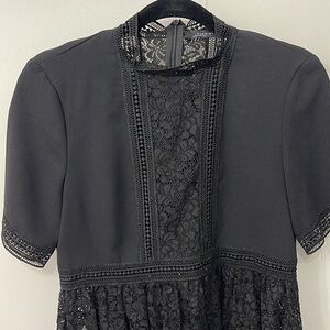 Zara Womens Sz s Black Lace Crochet High Neck Peplum Short Sleeve Blouse Top