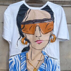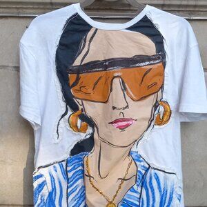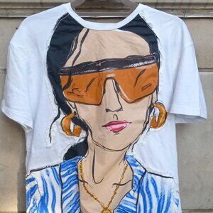Zara Womens T Shirt Graphic Embroirdered Summer Sunglasses Face Medium /…