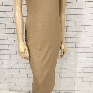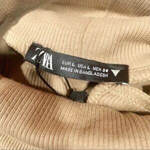 Zara Women’s Tan High Collar Rib Dress. A charming high collar rib dress.