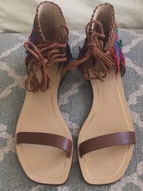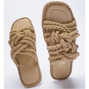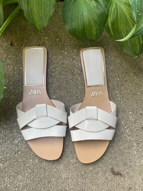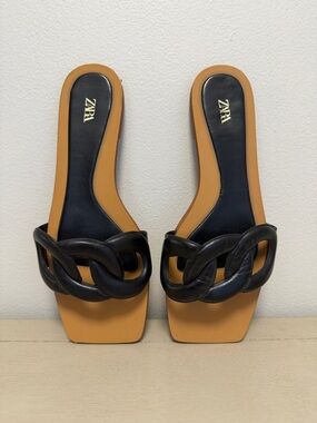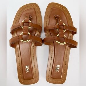 Zara Women's Tan Leather Sandals US 7.5, EU 38 New With Defects