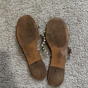 Zara Women's Tan Sandals with Pearl Accents