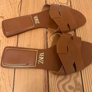 Zara Women's Tan Slide Sandals
