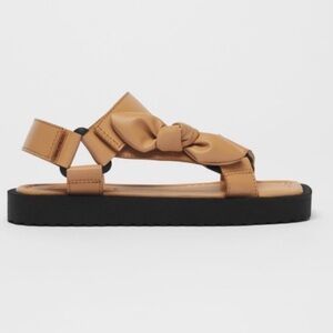 Zara Womens Tan Strapped Bow Sandals Size 36 Fits Like US 6/6.5