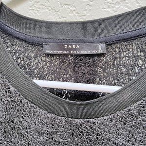 Zara Women's Textured Lace Top Blouse Short Sleeve Black Size M