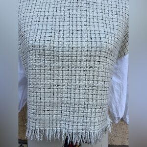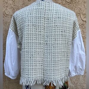 Zara Women's Textured Tweed Cotton Sleeves Body Fringe Hem Crop Top Size XS
