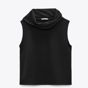 Zara Women's Top 7" Cowl neckline Size XL Black Sleeveless Polyester NEW