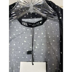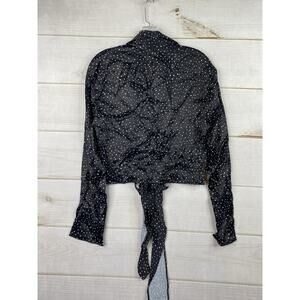 Zara Womens Top Size L Black Animal Print Satin Tie Open Front Long Sleeve NWT