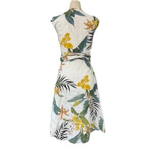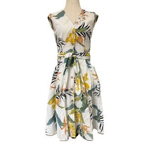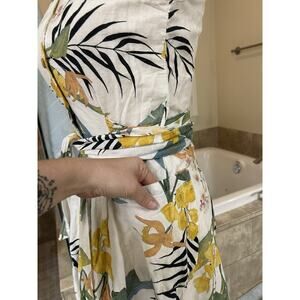Zara Womens Tropical Floral Button Up Dress Flutter Sleeve Waist Tie Linen Small