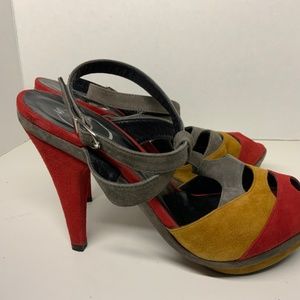 Zara Womens T-strap Peep Toe Multicolor Suede Platform Heel Size 40/ US 7