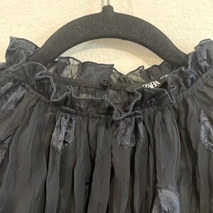 Zara Black Semi Sheer Mesh Polka Dot Balloon Sleeve Ruffle Cuff Cropped Tunic