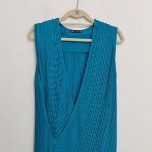 Zara Women's Turquoise Gauzy Sleeveless Wrap Front Plunge Neck Dress Size S.