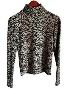 Zara Womens Turtleneck Long Sleeve Animal Print Pullover Top SZ S