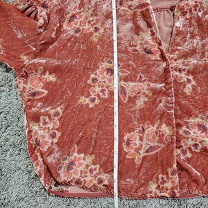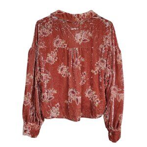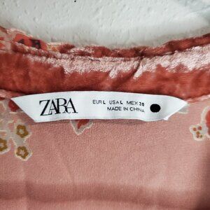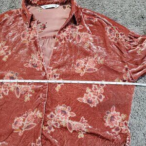 Zara Women's Velvet Burnout Orange Floral Cropped Button Shirt - Large