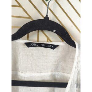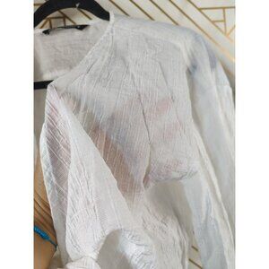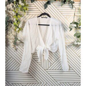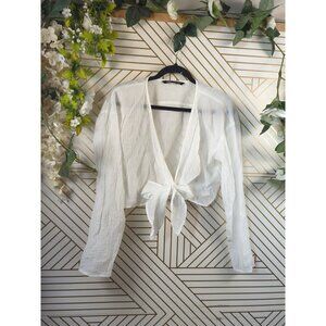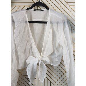 Zara Women's Viscos Tie Front Top in White Long Sleeve Crop Summer Coastal SMALL