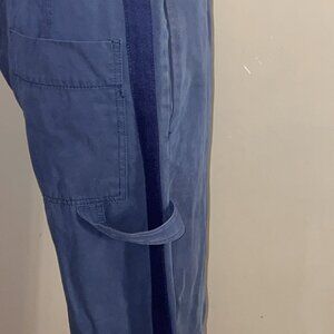 Zara Womens WBlue Canvas Pants Tuxedo Side Stripe Wide Carpenter Loop Leg Sz S