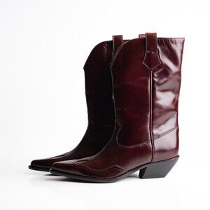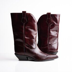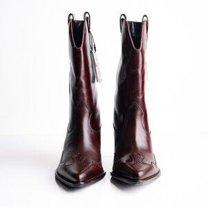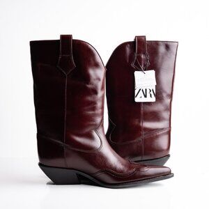 Zara Womens Western Leather Boots Maroon US 8 EU 39 burgundy 1005/410 NWT