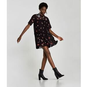Zara Womens Whimsigoth Boho Sequin Embroidered Floral Mini Dress in Black. Size Small.